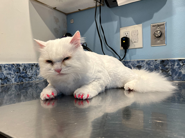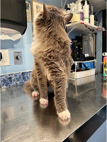 If you were looking for a simple solution for your cat scratching furniture, Soft Paws would be a great option. We can apply Soft Paws to just the front paws or we can do both front and back paws.