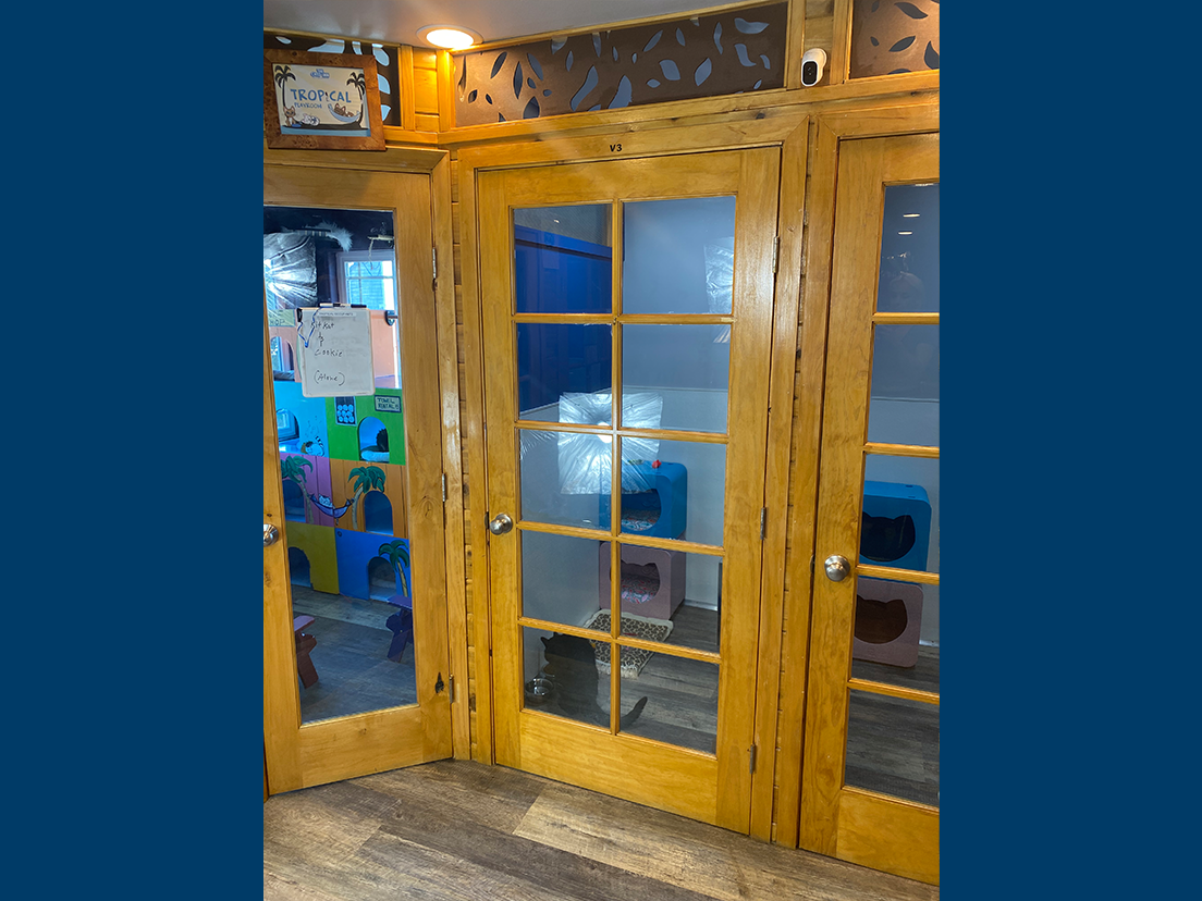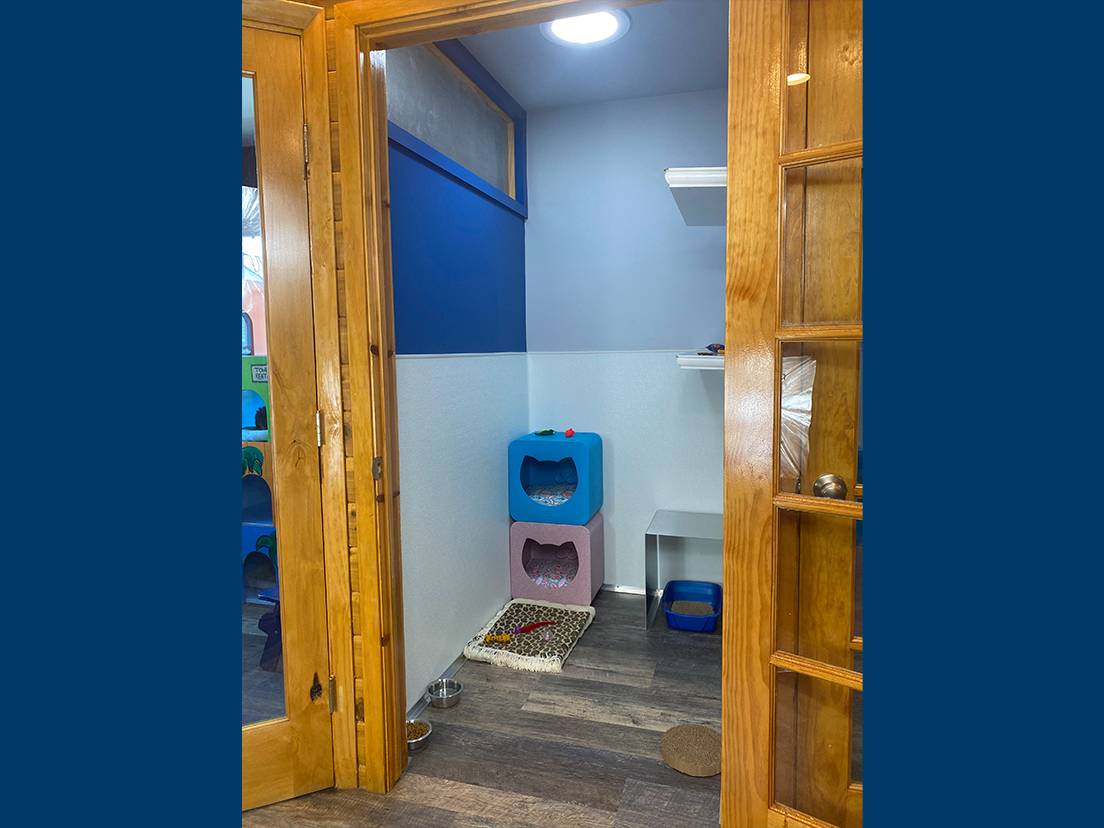 All our kitties are let out to play for 3 to 6 hours everyday at The Cats’ Inn. We have 8 wonderful themed playrooms to suit their individual purrrsonalities. We have The Carnival Room complete with a kitty ferris wheel. The Boat Dock Room for those that like to fish. Golden Gate Play Space for those wanting some extra fresh air. Alcatraz Play Space for those wanting some alone time, with full window views . The Tropical Room for the sunbathers. The Egyptian Room for the history buffs and explorers. The Pounce And Play Zone complete with extraordinary laser fun. The Meow And Mellow Out Room for those that like to meow between long kitty naps. We also have individual playrooms for our feline guests that like to lounge by themselves.